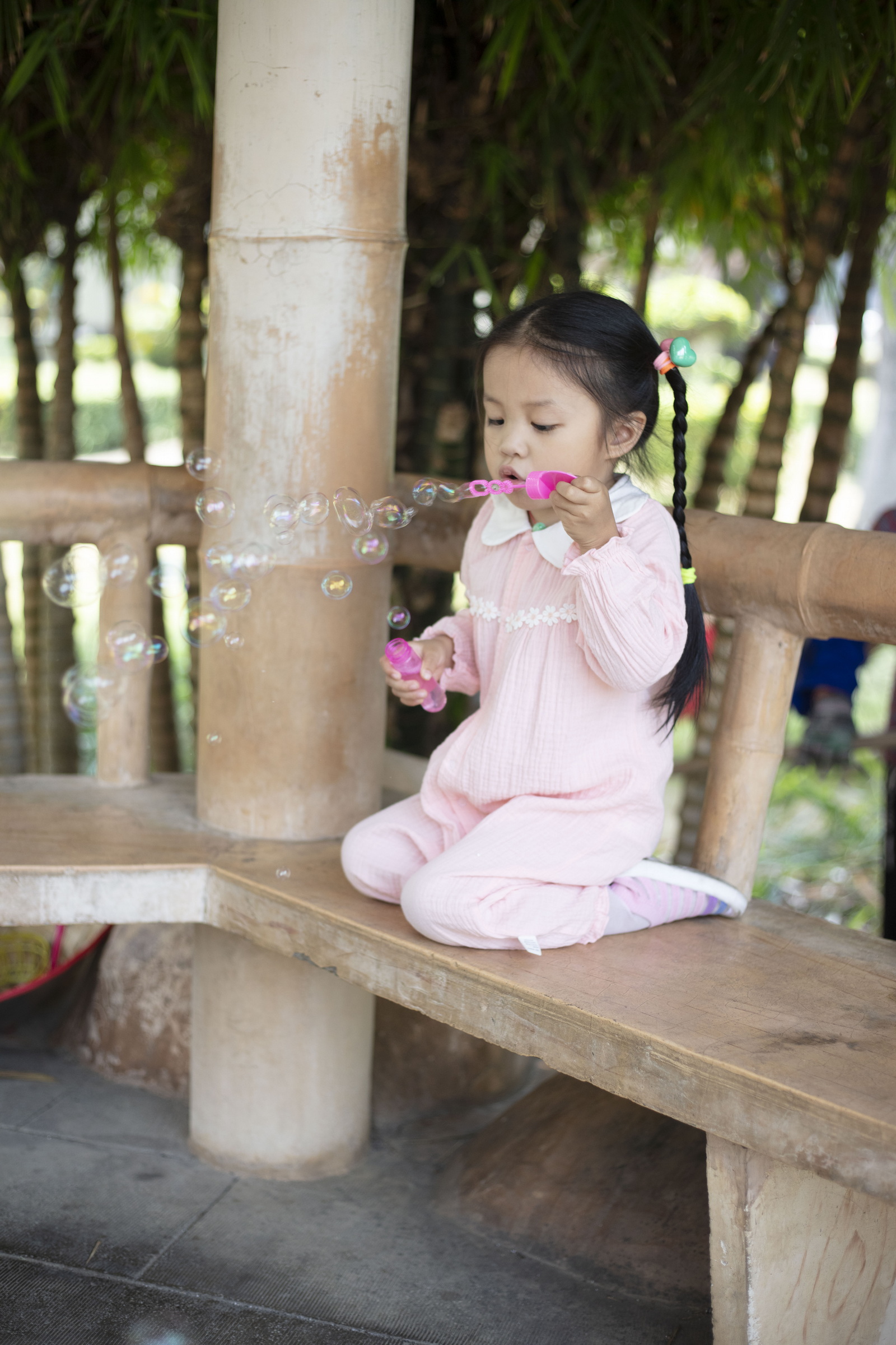 除了吹泡泡,我还喜欢和爸爸妈妈在院子里玩各种游戏。夏天的傍晚,我们常常在葡萄架下玩捉迷藏。我总是机灵地躲在堆满杂物的角落,或是藏在茂密的桂花树后面,听着爸爸妈妈假装着急的呼喊声,憋住笑,连呼吸都变得小心翼翼。等他们好不容易找到我,我又会拉着他们玩跳格子,用粉笔画出的小方格,成了我蹦蹦跳跳的小天地。